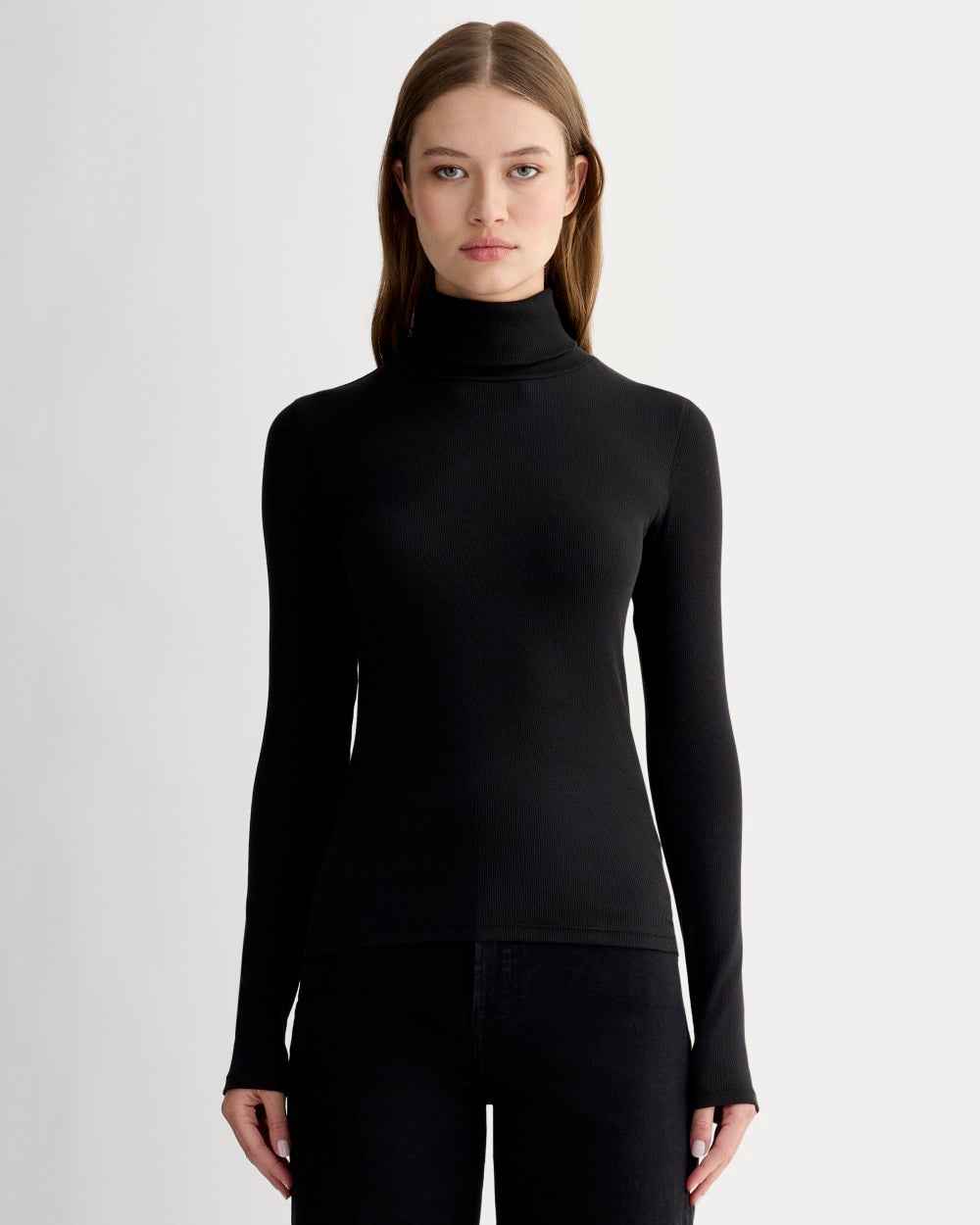 We’ve remixed our favorite fits with Supima® cotton. Made from an exceptionally soft blend of fine-ribbed Supima® cotton and stretchy elastane for extra comfort, the Luxe Rib Turtleneck features a classic fold-over turtleneck, long fitted sleeves, and a snug fit throughout, which makes it just as co...more