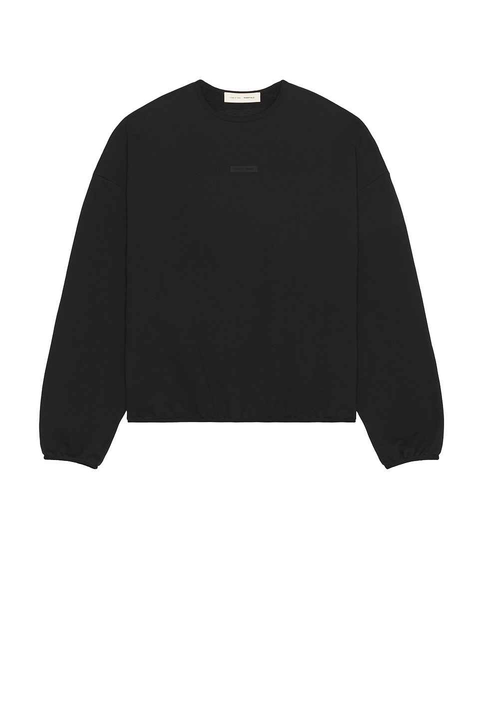 Fear of God ESSENTIALS Modern Fit Fleece Crewneck in Black 80% cotton 20% polyester. Hand wash. Front tonal leather logo label. Back logo detail. Fleece lining. FALF-MK56. 192SP256540F. About the designer: