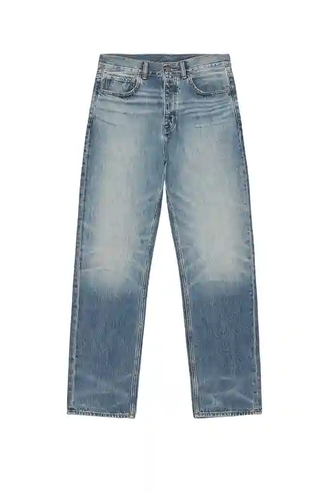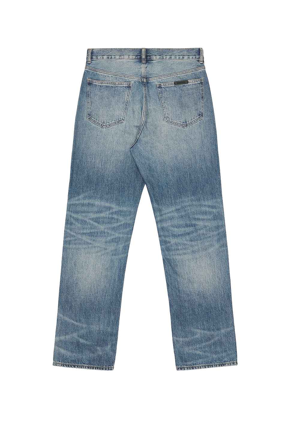 Fear of God ESSENTIALS Denim 5 Pocket Jeans in Blue 100% cotton. Hand wash. Button fly closure. 5-pocket styling. Rigid denim. FALF-MJ3. 130SP254910F. About the designer: