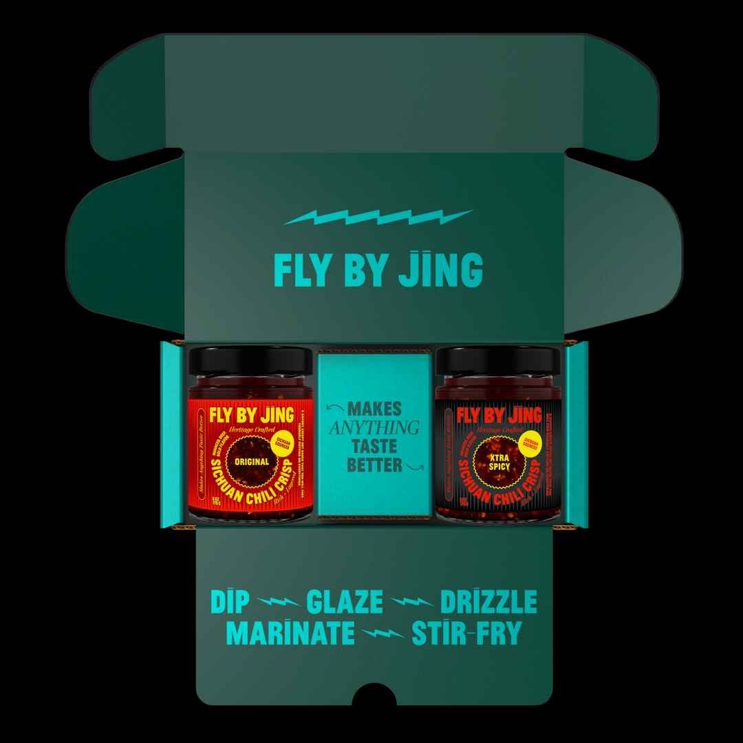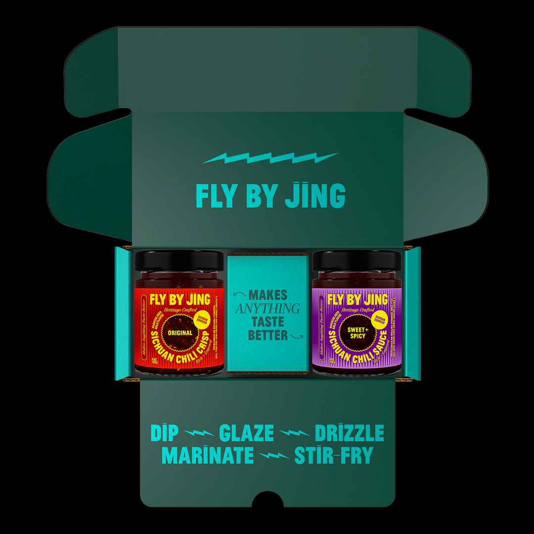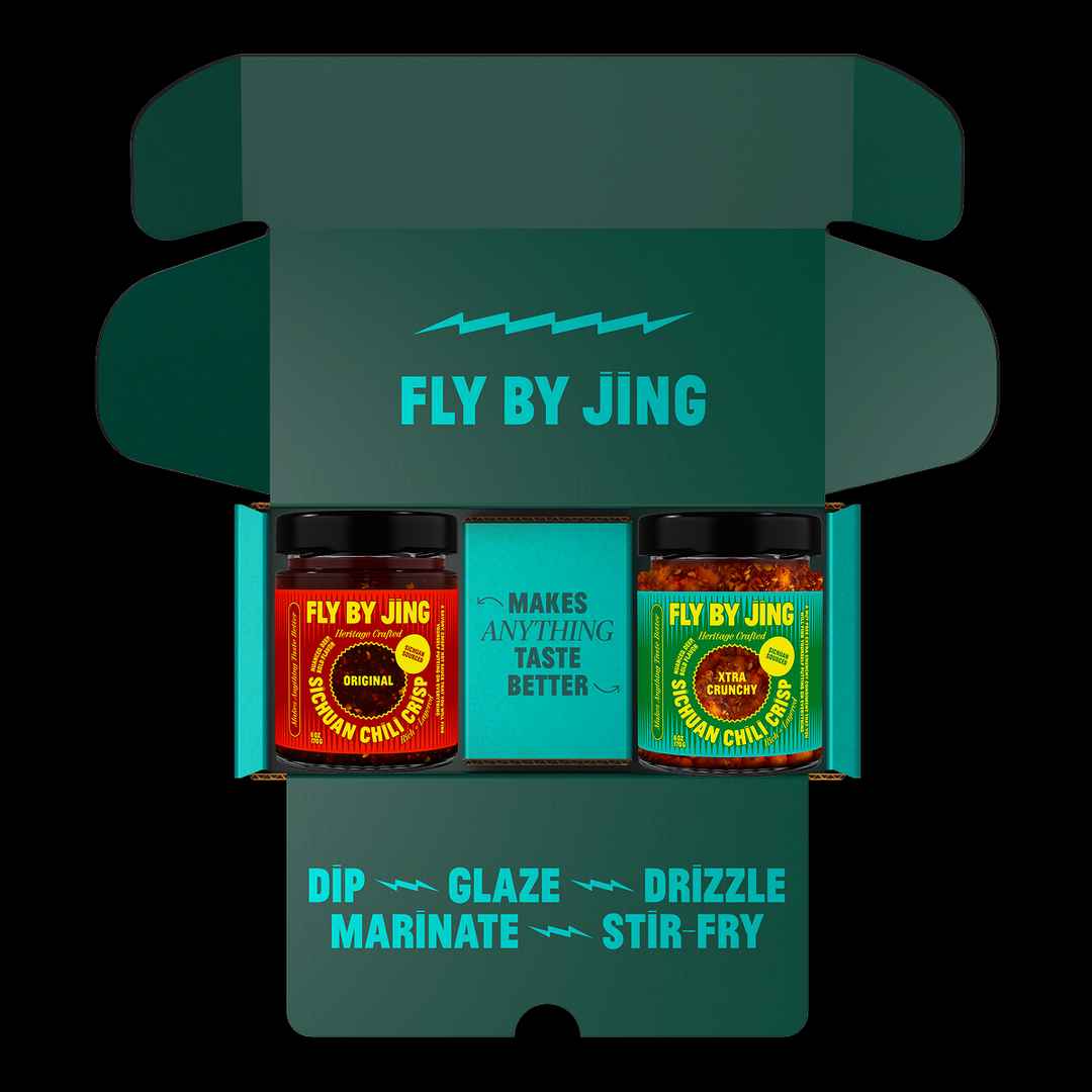 Our two best-selling sauces come together to amp up your next meal or midnight snack. Complex heat meets bold flavor to create an endlessly versatile and highly addictive tingly, savory experience, now in a gift-ready box. Choose the flavor pairings of your choice: