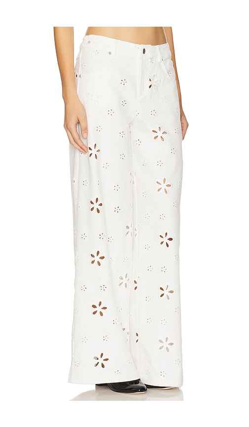 For Love & Lemons Daisy Eyelet Baggy Jean in White. - size XL (also in L, M, S, XS)