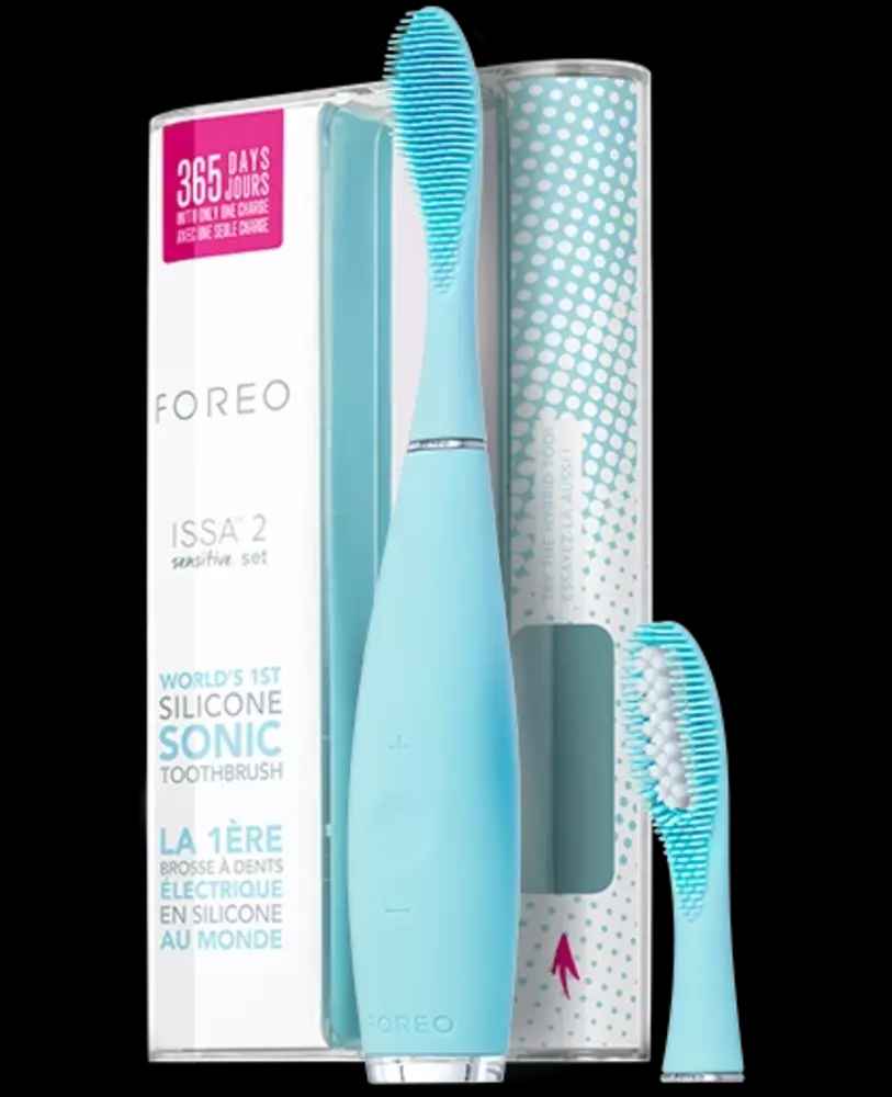 The gentlest dental revolution, ISSA 2 Sensitive Set was designed for those with sensitive gums. The extra soft brush head, made entirely out of ultra-hygienic silicone, removes plaque and tartar buildup while making it impossible to overbrush. Protect your tooth enamel, prevent gum recession and en...more
