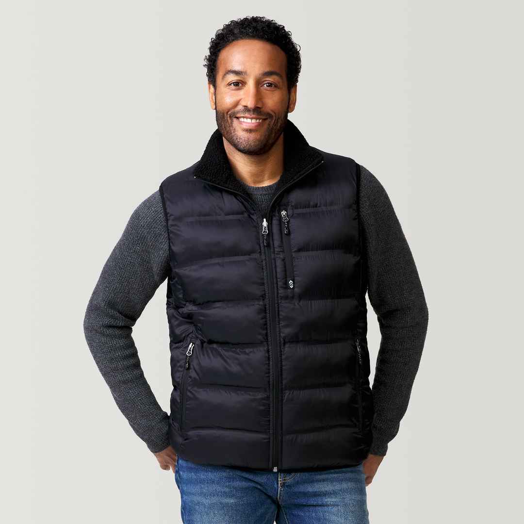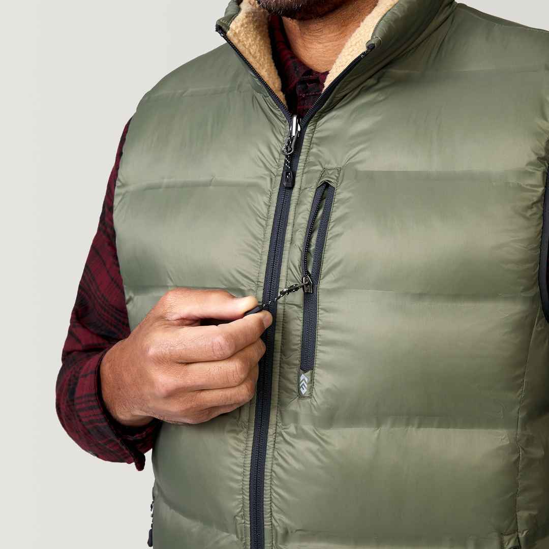 Elevate your wardrobe with a vest that embraces sustainability without compromising on style. Warmth meets conscience with the REPREVE high-quality synthetic fillthoughtfully made from recycled plastic bottlesgiving you the freedom to move and explore without feeling weighed down. Even better: This ...more
