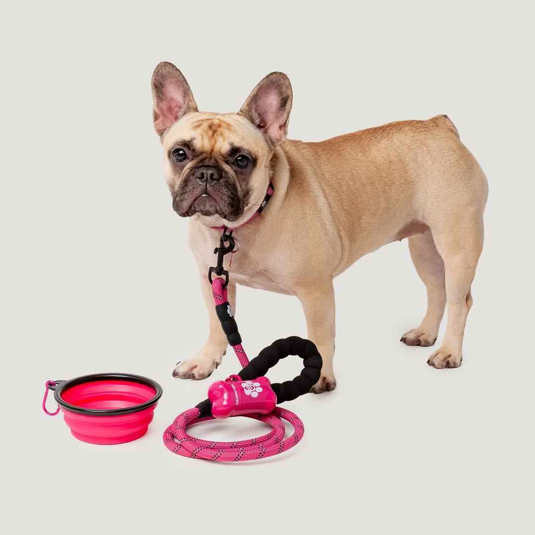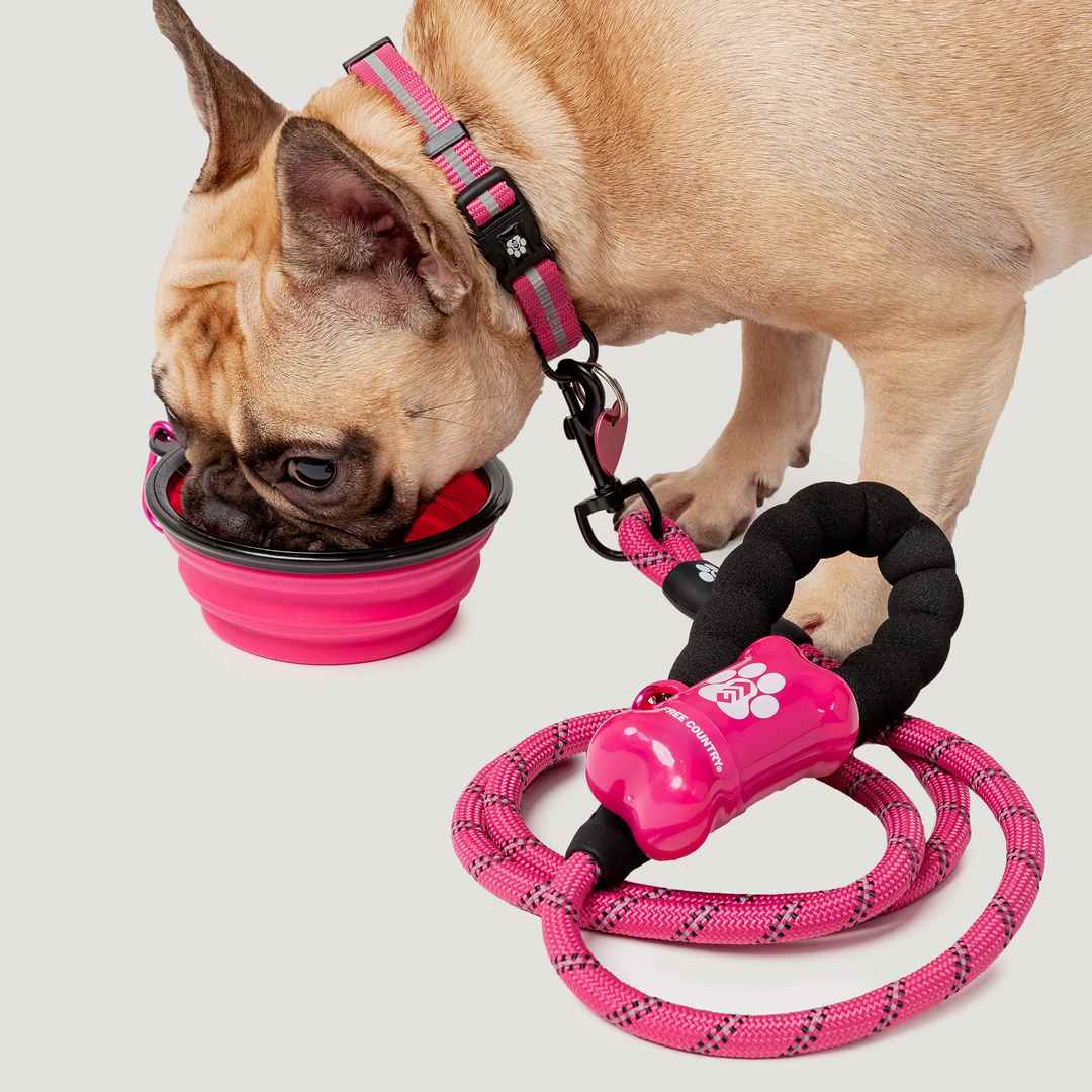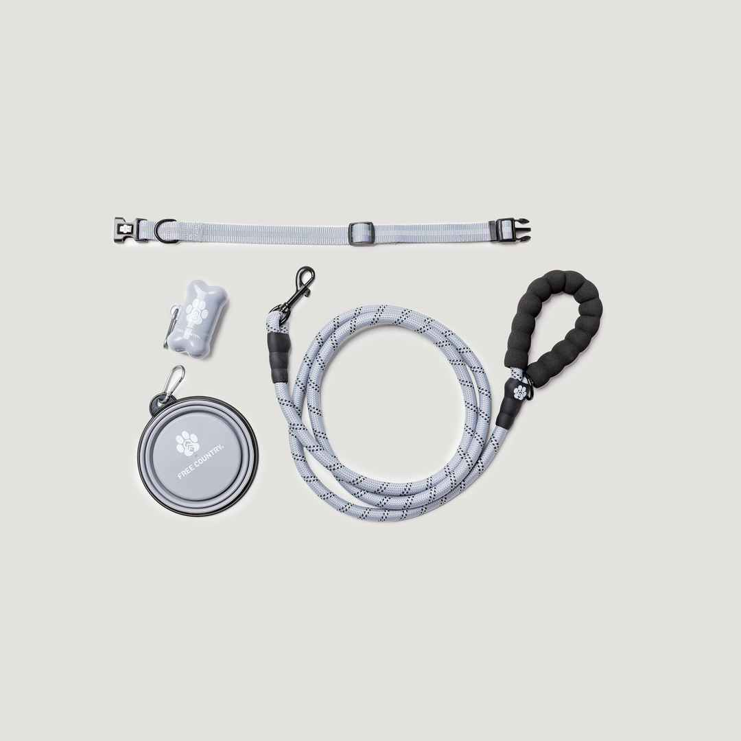Everything you and your best pal need for a day out and about! This set includes an adjustable collar, reflective leash, collapsible bowl and waste bag holder.Collar:AdjustableReflective tapingD-ringLeash:Soft gripReflective tapingD-ringCollapsible bowl:Great for on-the-go water and mealsWaste bag h...more