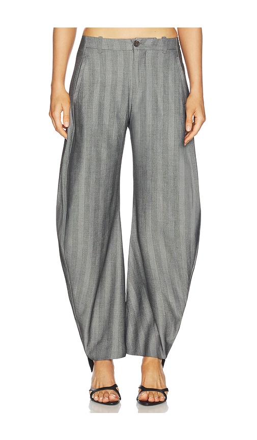 Free People Spotlight Trouser in Grey. - size 12 (also in 4, 6) Free People Spotlight Trouser in Grey. - size 12 (also in 4, 6) 63% polyester 33% viscose 4% elastane. Machine wash. Zip fly with button closure. Side seam pockets. Back faux welt pockets. Pleated design. Heavyweight twill fabric. 20 at...more