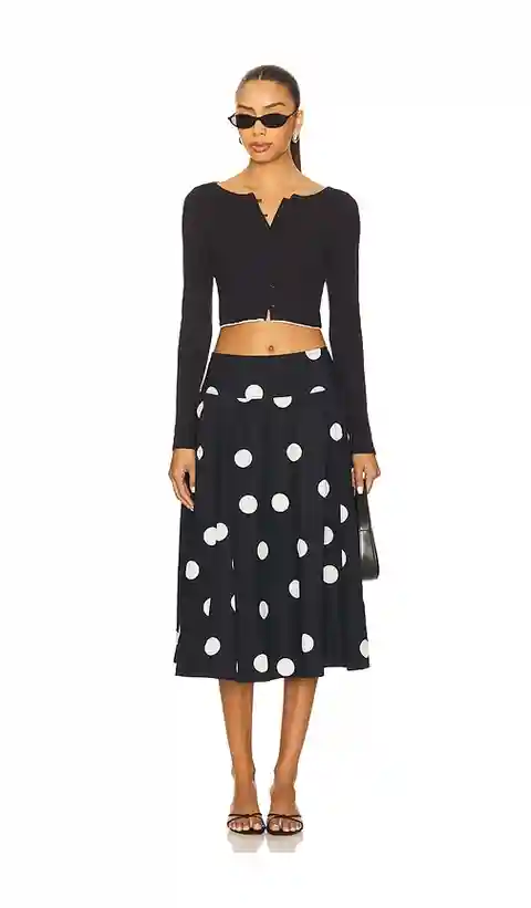 Free People x REVOLVE Laverne Set in Black. - size L (also in XL) Free People x REVOLVE Laverne Set in Black. - size L (also in XL) 97% cotton 3% spandex. Machine wash. Unlined. Top: Front button closure Skirt: Pull-on styling with elasticized waistband. Cropped fit. Jersey fabric at top. Poplin fab...more