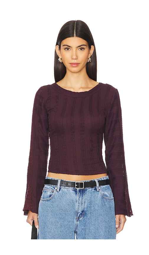 Free People Rocky Long Sleeve Top in Wine. - size L (also in M, S, XL, XS)