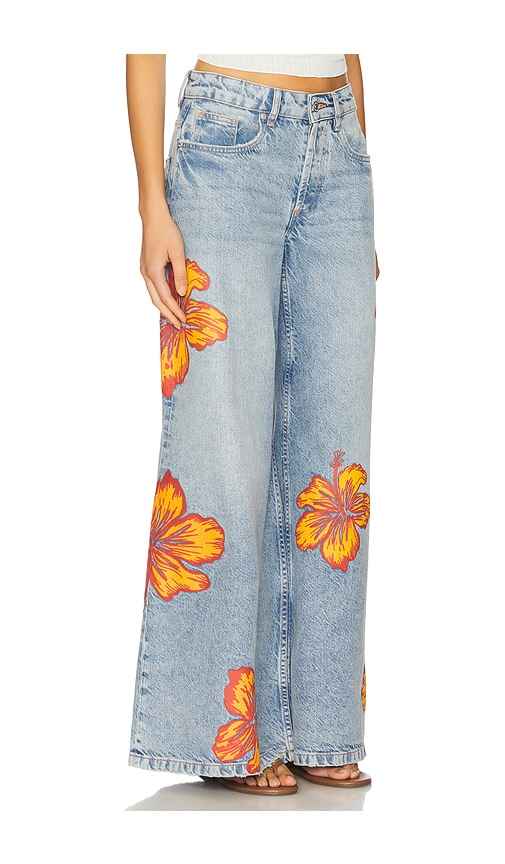 Free People Palisades Wide Leg Pant in Blue. - size 24 (also in 25, 26, 27, 28, 29, 30, 31) Free People Palisades Wide Leg Pant in Blue. - size 24 (also in 25, 26, 27, 28, 29, 30, 31) 60% cotton 40% polyester. Machine wash recommended. Button fly closure. 5-pocket styling. Screen printed floral deta...more
