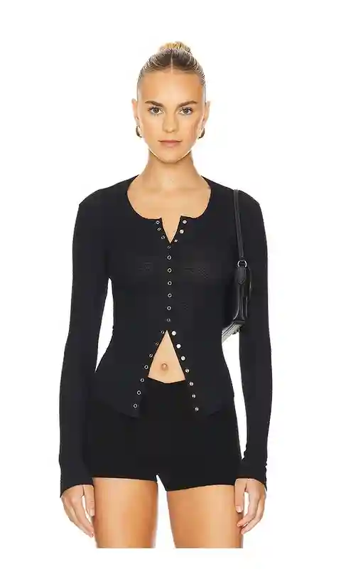 Free People x Intimately FP Going Places Cardi In Black in Black. - size L (also in S, XS) Free People x Intimately FP Going Places Cardi In Black in Black. - size L (also in S, XS) Thermal textile. Made in Vietnam. Hand wash recommended. Front snap button closure. Light-weight thermal fabric. FREE-...more