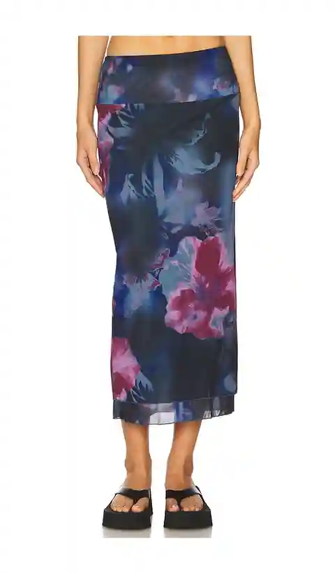Free People Sunset Mesh Maxi Skirt in Blue. - size XL (also in L, M, S, XS) Free People Sunset Mesh Maxi Skirt in Blue. - size XL (also in L, M, S, XS) Mesh textile. Hand wash recommended. Unlined. Pull-on styling with elastic waistband. Midweight mesh fabric. Item not sold as a set. Skirt measures ...more