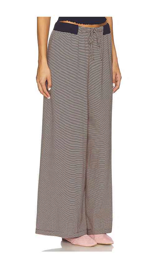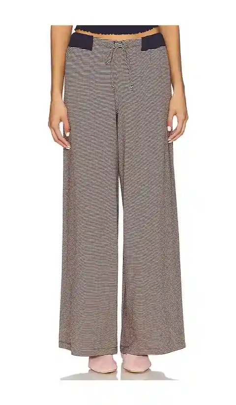 Free People x Intimately Out And About Pant in Navy. - size L (also in M, S, XL, XS) Free People x Intimately Out And About Pant in Navy. - size L (also in M, S, XL, XS) Body: 95% cotton 5% elastane Contrast: 95% viscose 5% elastane. Hand wash cold. Drawstring closure Elastic waistband. Ribbed wais...more
