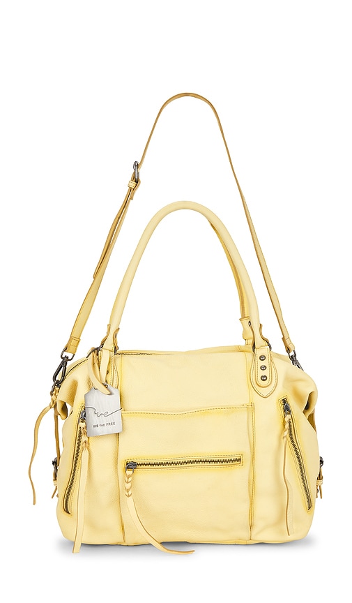 Free People Wtf Emerson Tote Bag in Yellow. Free People Wtf Emerson Tote Bag in Yellow. Leather exterior with cotton lining. Top zip closure. One main compartment. One inner slip pocket, one inner pocket with zip closure. Measures approx 15 W x 12 H x 6.5 D Shoulder strap with a 10 drop. FREE-WY95. ...more