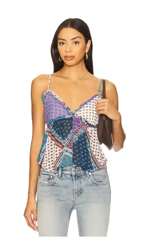 Free People Alix Printed Tank in Blue,Neutral. - size L (also in M, S, XL, XS) Free People Alix Printed Tank in Blue,Neutral. - size L (also in M, S, XL, XS) Chiffon textile. Machine wash cold. Adjustable crossover shoulder straps. Lining at cups. Cropped styling and open back. Midweight chiffon fab...more
