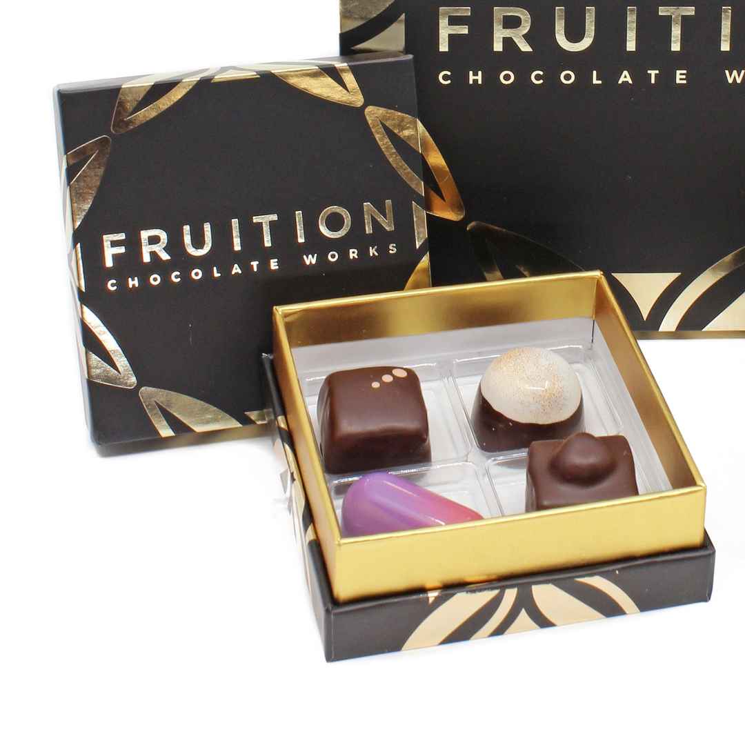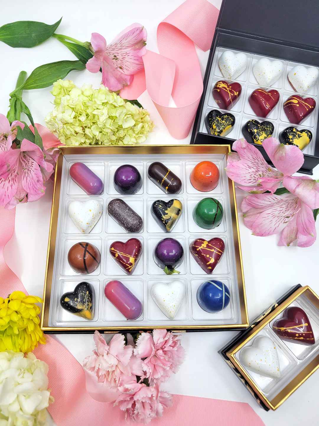 This assorted box of chocolate bon bons features a rotating selection of handcrafted confections from our chocolate case. Each piece is made in small batches to highlight unique flavors and textures, offer...more