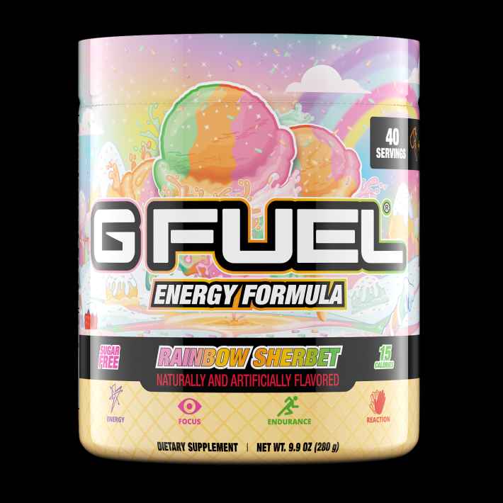 Who said You can't have dessert whenever you want!??? Not us! Which is EXACTLY why RAINBOW SHERBET G FUEL exists! A delicious, mouth-watering, dessert-infused flavor with a proper dash of sherbet flair added to it! And not only does this flavor look incredible on the outside, but it tastes just l...