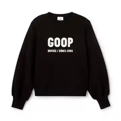 G. Label by goop The Graphic Puff-Sleeve Sweatshirt in Black, Large: Easy fit, custom goop graphic, sculptural sleeves that gather elegantly at the cuffsif youre looking to take your loungewear game to the next level, this sweatshirt is for you. Its cut from a luxe Italian cotton blend that looks al...more