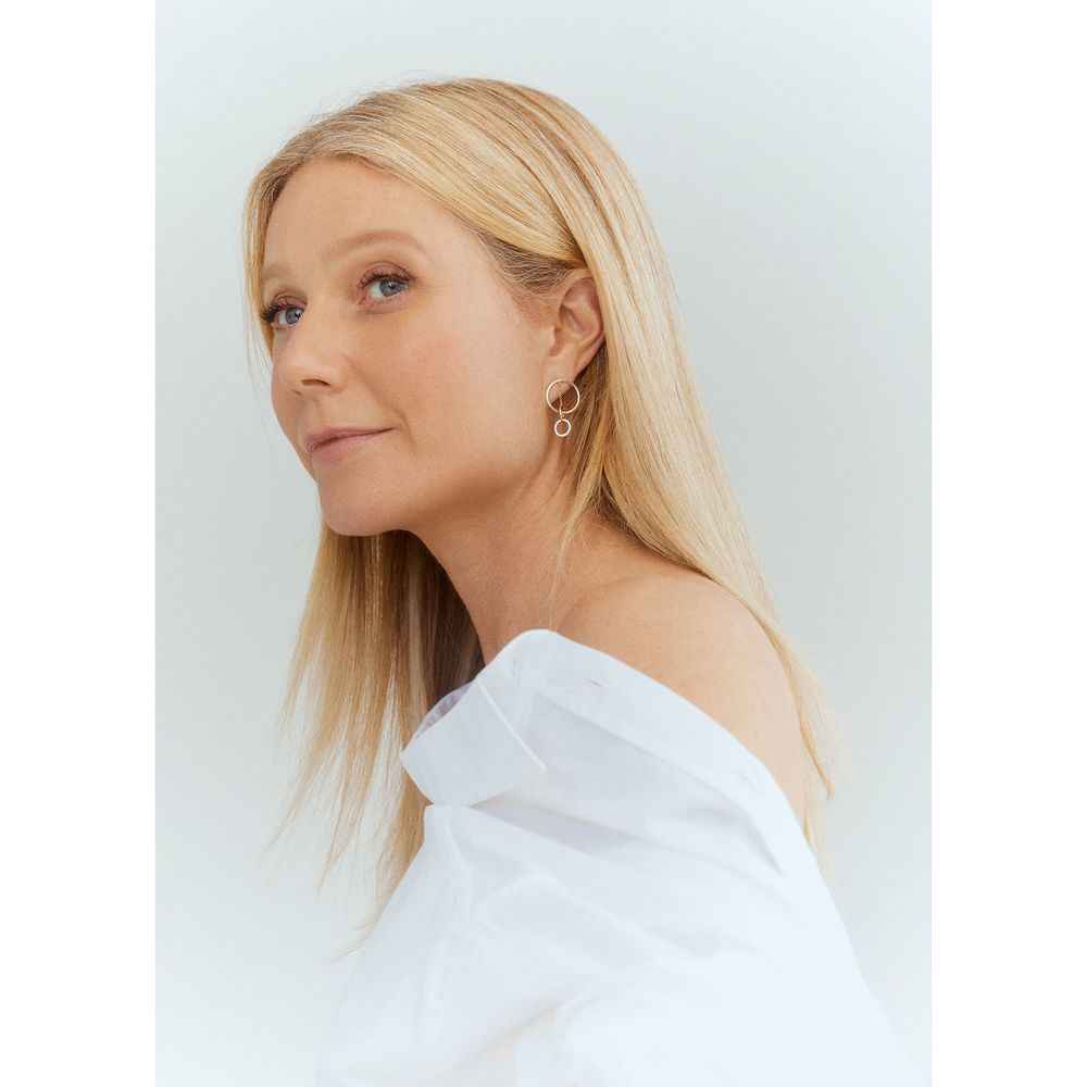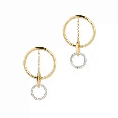 G. Label by goop Apple Circle Pav Drop Earrings in Yellow Gold/White Diamonds: Architectural and delicate at the same time, these post-back earrings feature slender front-facing hoops and playful elements (like interlocking annulets suspended by a delicate chain) that catapult them from understated ...more