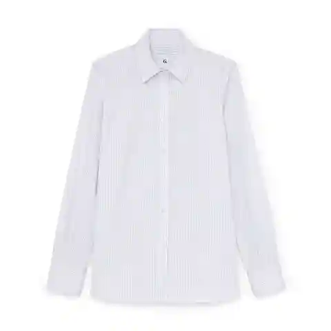 G. Label by goop Essential Button-Down in Pink/White, Size 0: This button-down is essential for a few reasons. Its done in satisfyingly crisp Italian cotton poplin. It can be worn alone or layered. Tucked or untucked. And the detailsstraight hem, no back pleatgive it a modern, minimal look that play...more