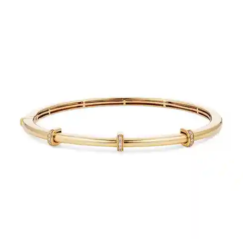 G. Label by goop Vasco Pav-Loop Bangle Bracelet in Yellow Gold/White Diamonds: The kind of versatile bracelet thats elegant on its own but can also be easily integrated into a wrist stack, this slim bangle is embellished with a trio of pav white diamond bands spaced evenly along the top. Internal fr...more