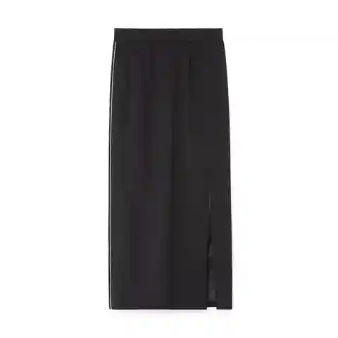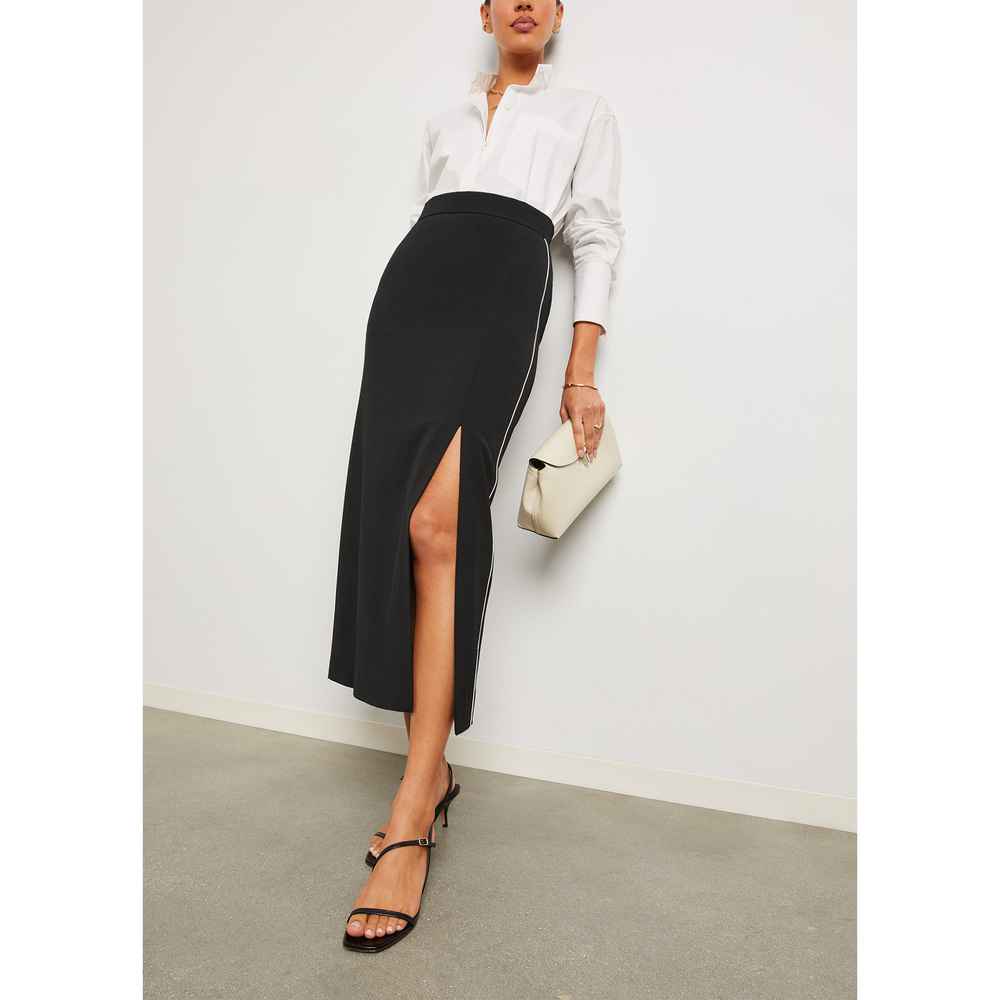 G. Label by goop Synn Tea-Length Skirt in Black, Size 0: One of Gwyneths favorites from our December collection, Synn is long and lean and tailored to perfection. Cut from a soft, stretchy wool blend, it has a high banded waist and a snug fit through the hips, thanks to carefully placed darts. The s...more