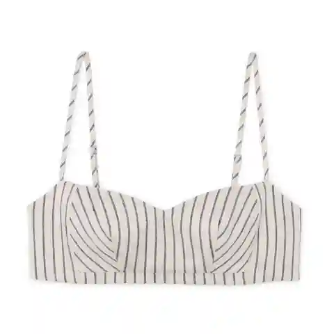 G. Label by goop Betty Bustier in Navy/Oat, Size 10: Its no secret that Gwyneth loves a bustier-and-matching-bottoms moment, so naturally, we decided to create a version of the look for summer. For the top, we started with an Italian linen blend and tailored it into a seamed bra with a subtle sweeth...more