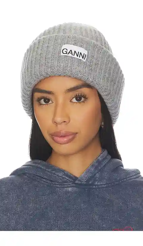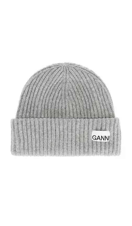 Ganni Structured Rib Beanie in Grey. Ganni Structured Rib Beanie in Grey. Shell: 45% wool, 35% wool, 20% polyamide. Made in Moldavia. Heavyweight ribbed knit. Logo patch. Hand wassh only. Approx 10.75 in crown. GANR-WA142. A4429. Founded in 2000, the Ganni brand aims to design effortless staples for...more