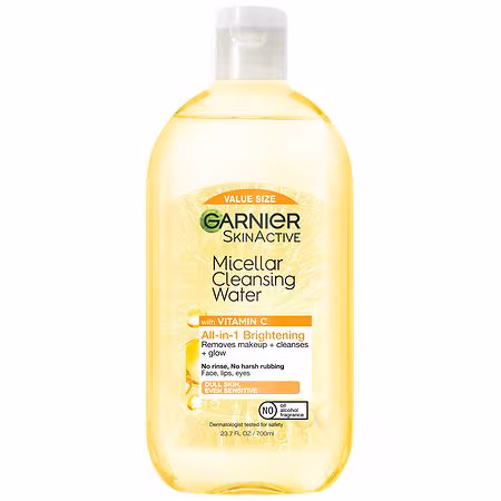 ALL-IN-1 CLEANSER TO BRIGHTEN SKIN: This all-in-1 brightening micellar cleansing water is a facial cleanser and makeup remover that is gentle on skin. The Garnier Micellar Cleansing Water with Vitamin C cleanses, removes makeup and brightens skin. Use as a facial cleanser in the morning and as a gen...more