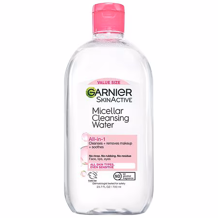This all-in-1 micellar cleansing water is a facial cleanser and makeup remover that is surprisingly powerful, yet gentle on skin. This micellar water for all skin types effectively cleanses, removes makeup, and refreshes skin. Like a magnet, micelles capture and lift away dirt, oil and makeup withou...more