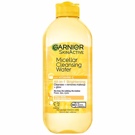 This all-in-1 brightening micellar cleanser water is a facial cleanser and makeup remover that is surprisingly powerful, yet gentle on skin. The Garnier Micellar Cleansing Water with Vitamin C works for all skin types. It effectively cleanses, removes makeup and boosts glow. Like a magnet, micelles ...more