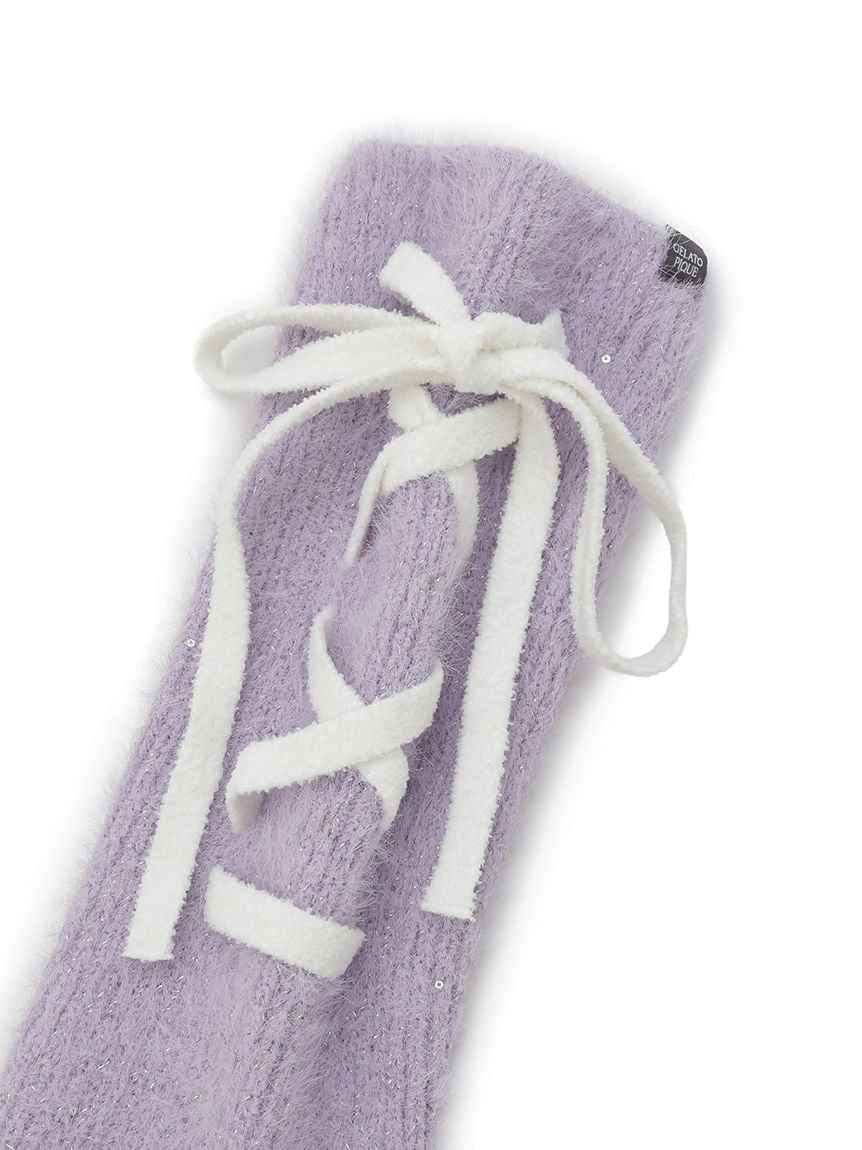 [HALLOWEEN Feather Knit Leg Warmers][Design/Styling]This year's HALLOWEEN COLLECTION features a feminine, monotone style featuring trendy ribbons. These leg warmers feature the same feather knit as the knitwear in the same series. The miscellaneous items are accented with glitter and sequins for a s...more
