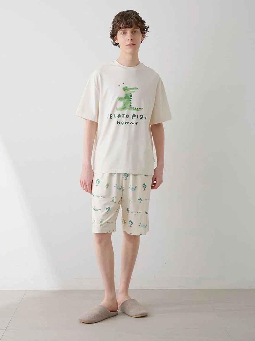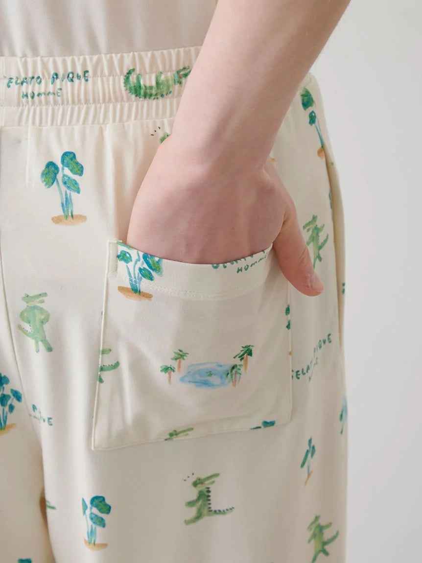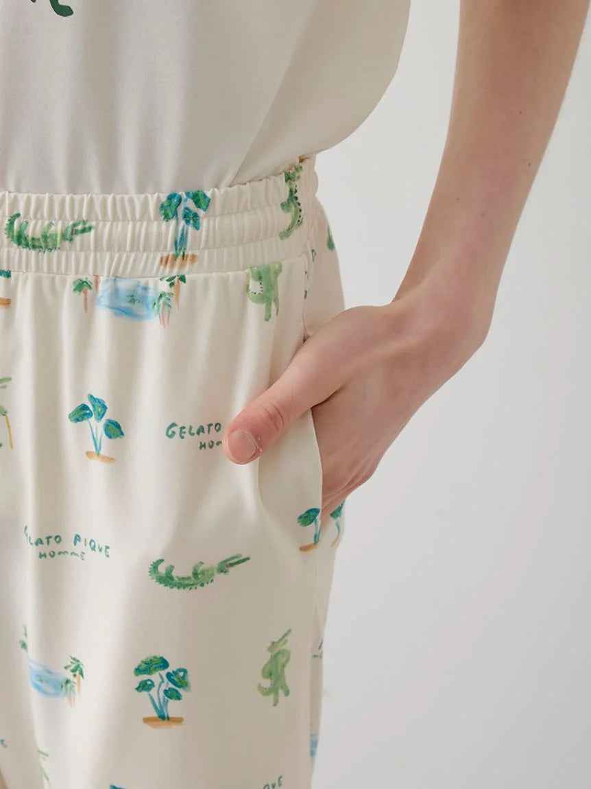[Cool-to-the-touch shorts with an all-over print of the story of a traveling crocodile][Design/Styling]The story of a charming crocodile traveling in search of an oasis. This HOMME collection is full of summer mood, featuring playful art by illustrator Toshiyuki Hirano. These cool-looking shorts wit...more