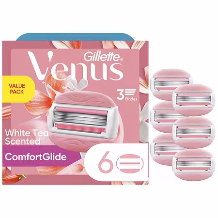 Your skin deserves a next-level shave. That's why our Gillette Venus ComfortGlide Razor Blades for Women are made with your unique skin in mind. Upgrade your shave routine to a pampering spa day. With the 2-in-1 White Tea scented gel bars, these Venus ComfortGlide blade refills both lather and shave...more