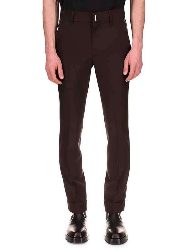 Made of wool, these slim-fit trousers feature side slip pockets and back welt pockets. Belt loops Zip fly, hook closure Side slip pockets Back welt pockets 100% wool Dry clean Made in Italy SIZE & FIT Inseam, about 32 For basic alterations and hemming, book an appointment online at your local Sa...more