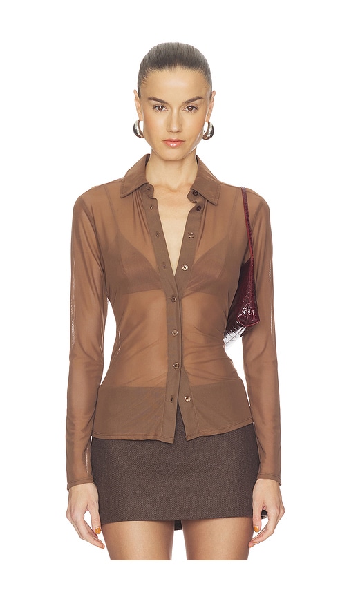 Good American Mesh Button Up Top in Brown. - size S (also in XS, M)