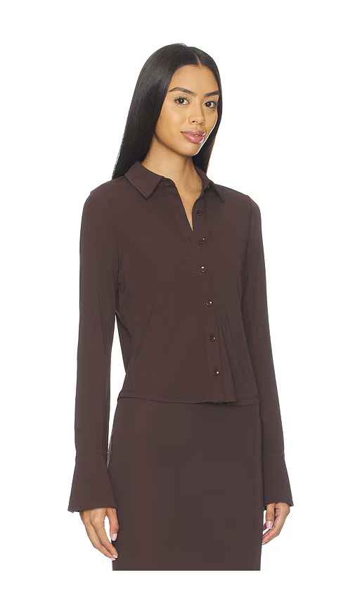Good American Matte Jersey Long Sleeve Shirt in Brown. - size XXXL/3X (also in L, M, S, XS, XXL/2X, XXXXL/4X) Good American Matte Jersey Long Sleeve Shirt in Brown. - size XXXL/3X (also in L, M, S, XS, XXL/2X, XXXXL/4X) 96% viscose 4% elastane. Made in China. Machine wash cold. Button closure. Stret...more