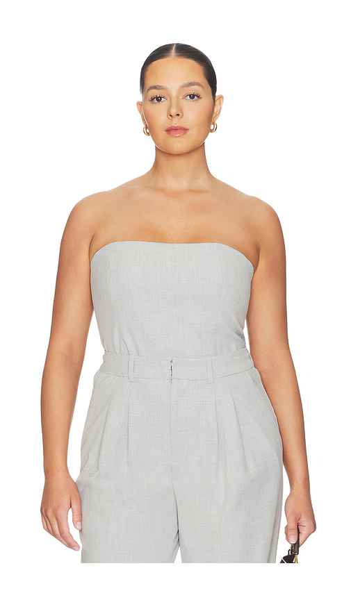 Good American Essential Suiting Strapless Top in Light Grey. - size L (also in 2X, 3X, 4X, 5X, M, S, XL, XS) Good American Essential Suiting Strapless Top in Light Grey. - size L (also in 2X, 3X, 4X, 5X, M, S, XL, XS) 67% polyester 29% viscose 4% elastane. Made in Cambodia. Dry clean only. Back zipp...more