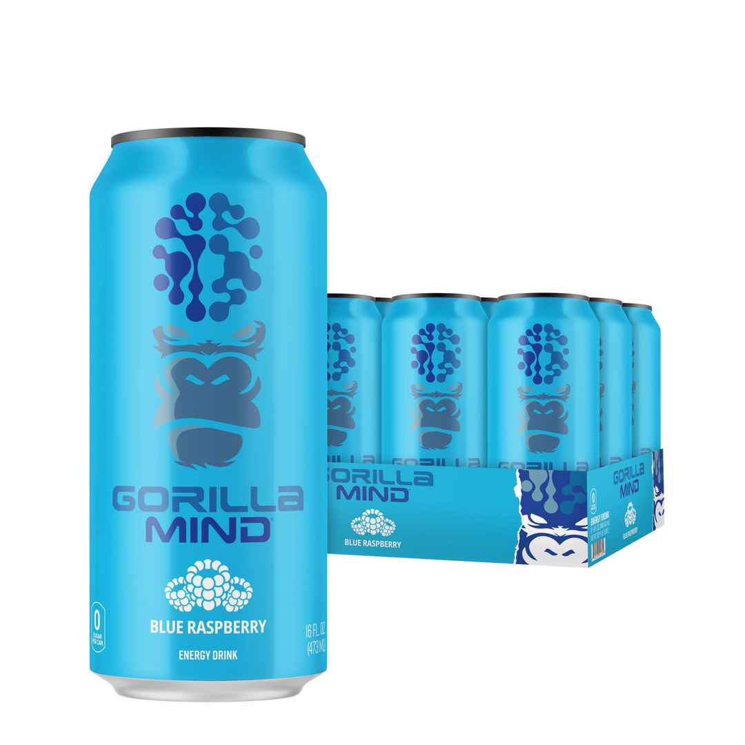 Gorilla Mind Energy Drink - Blue Raspberry 16Oz. (12 Cans)