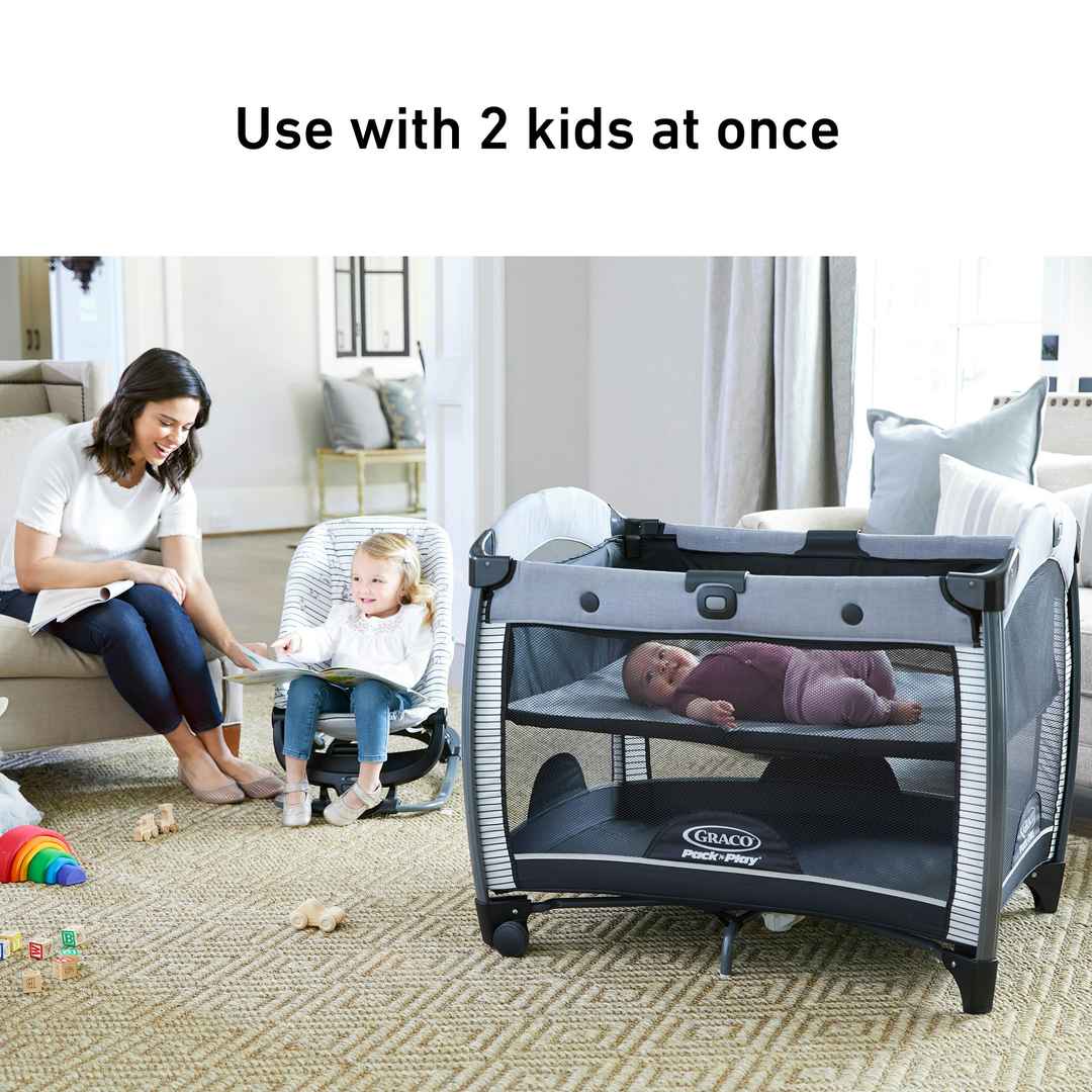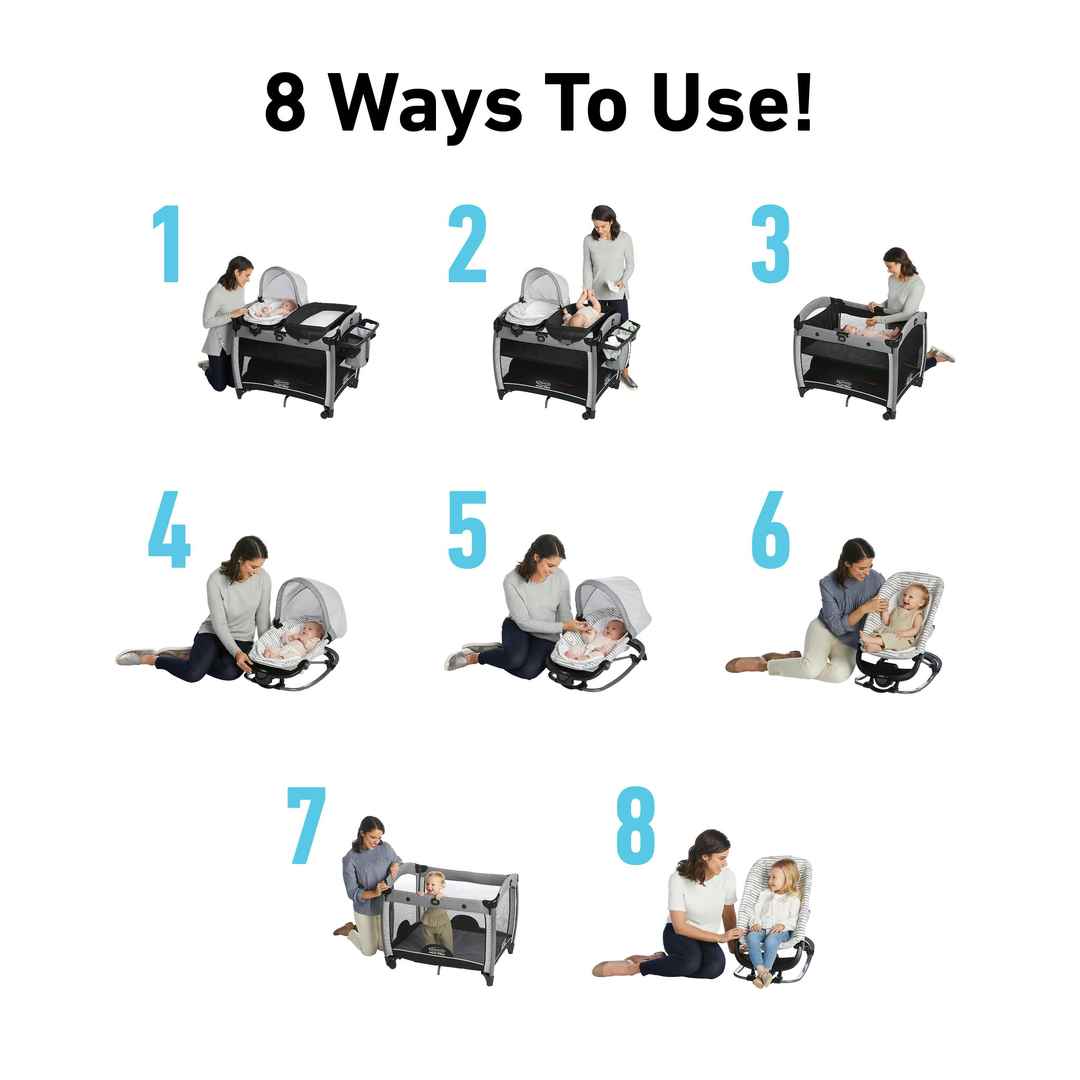 With 8 ways to use, the Graco Pack 'n Play Rock 'n Grow Playard grows with your child, featuring a grow with me seat that transitions from a newborn seat to a toddler seat! The Graco Pack 'n Play Rock 'n Grow Playard features 8 different ways to use to grow with your child! From a portable seat for ...more