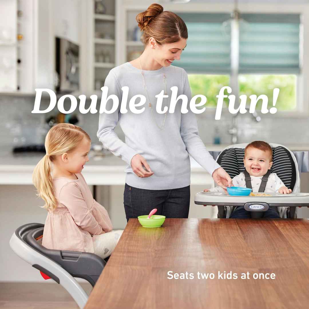 Graco Blossom 6-in-1 Highchair grows with your family by offering multiple seating options from infant to toddler. It can even accommodate 2 children at once. Graco Blossom 6-in-1 Highchair grows with your family offering multiple seating options from infant to toddler and can seat 2 children at onc...more