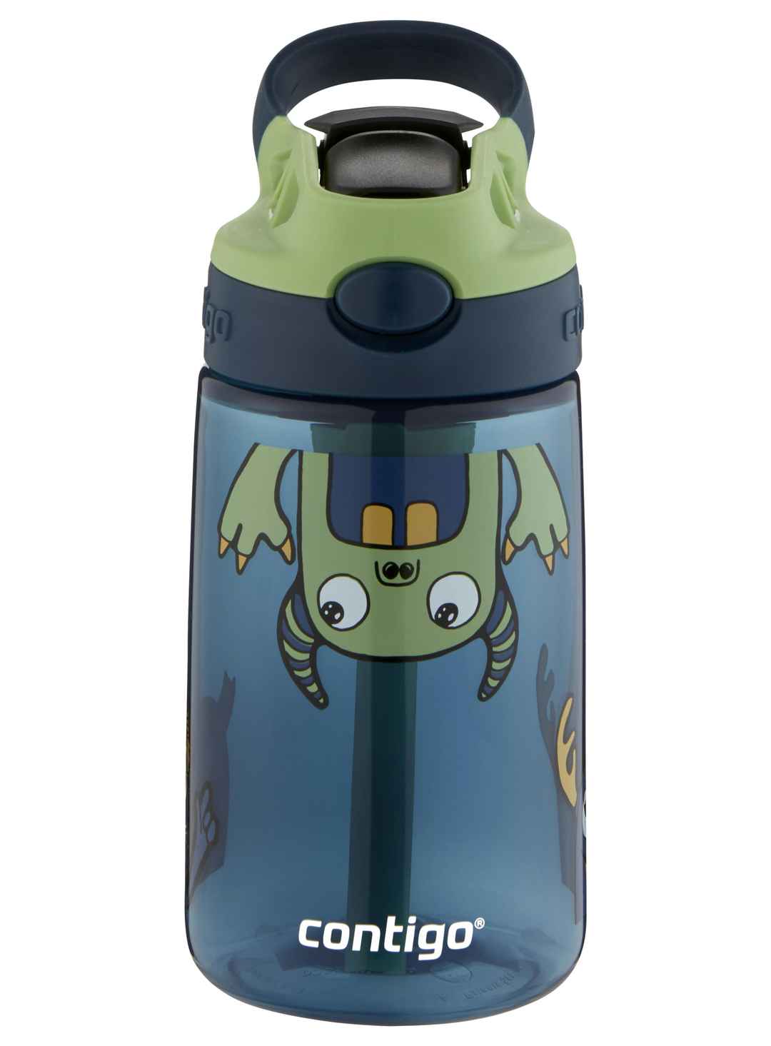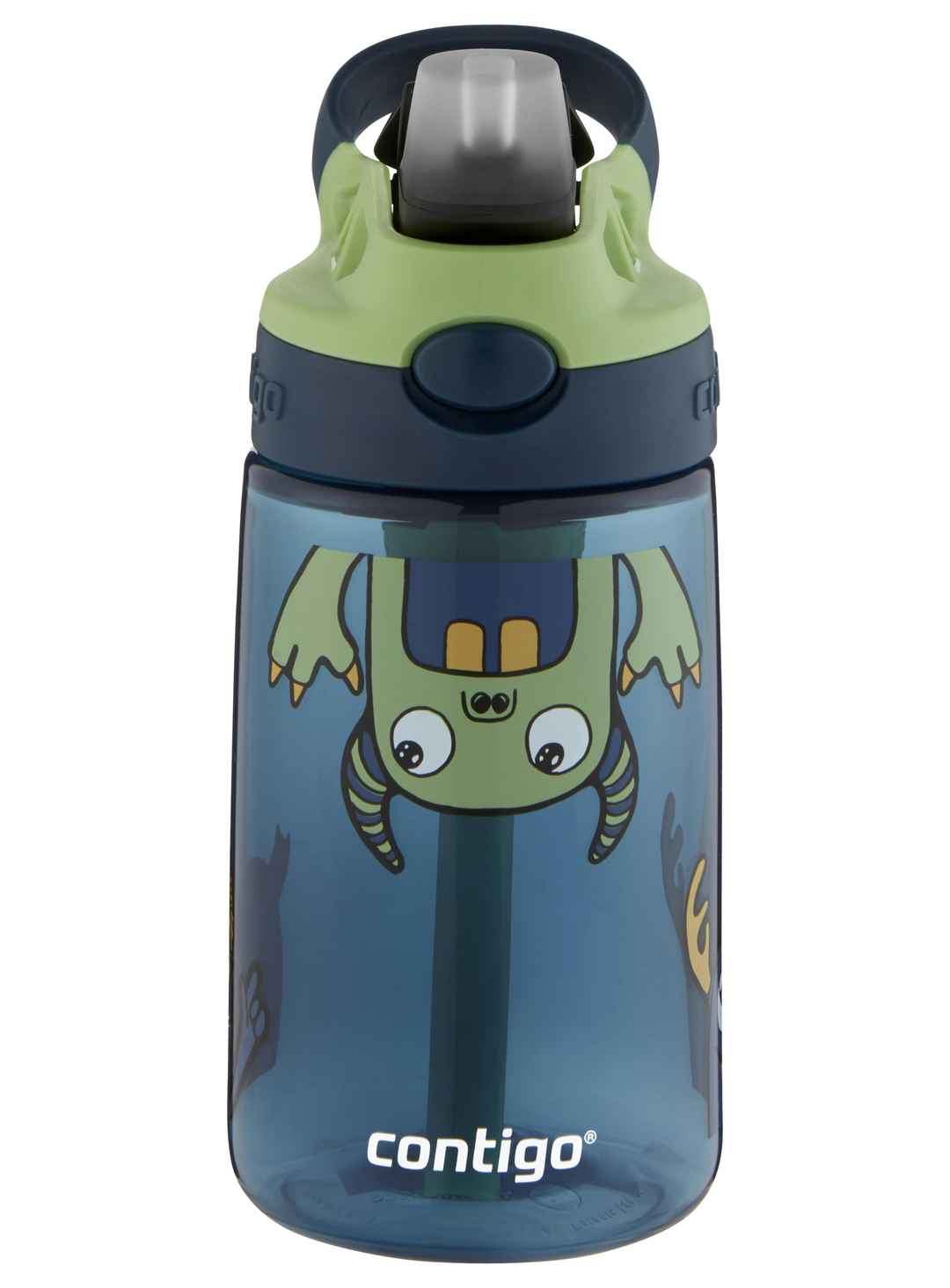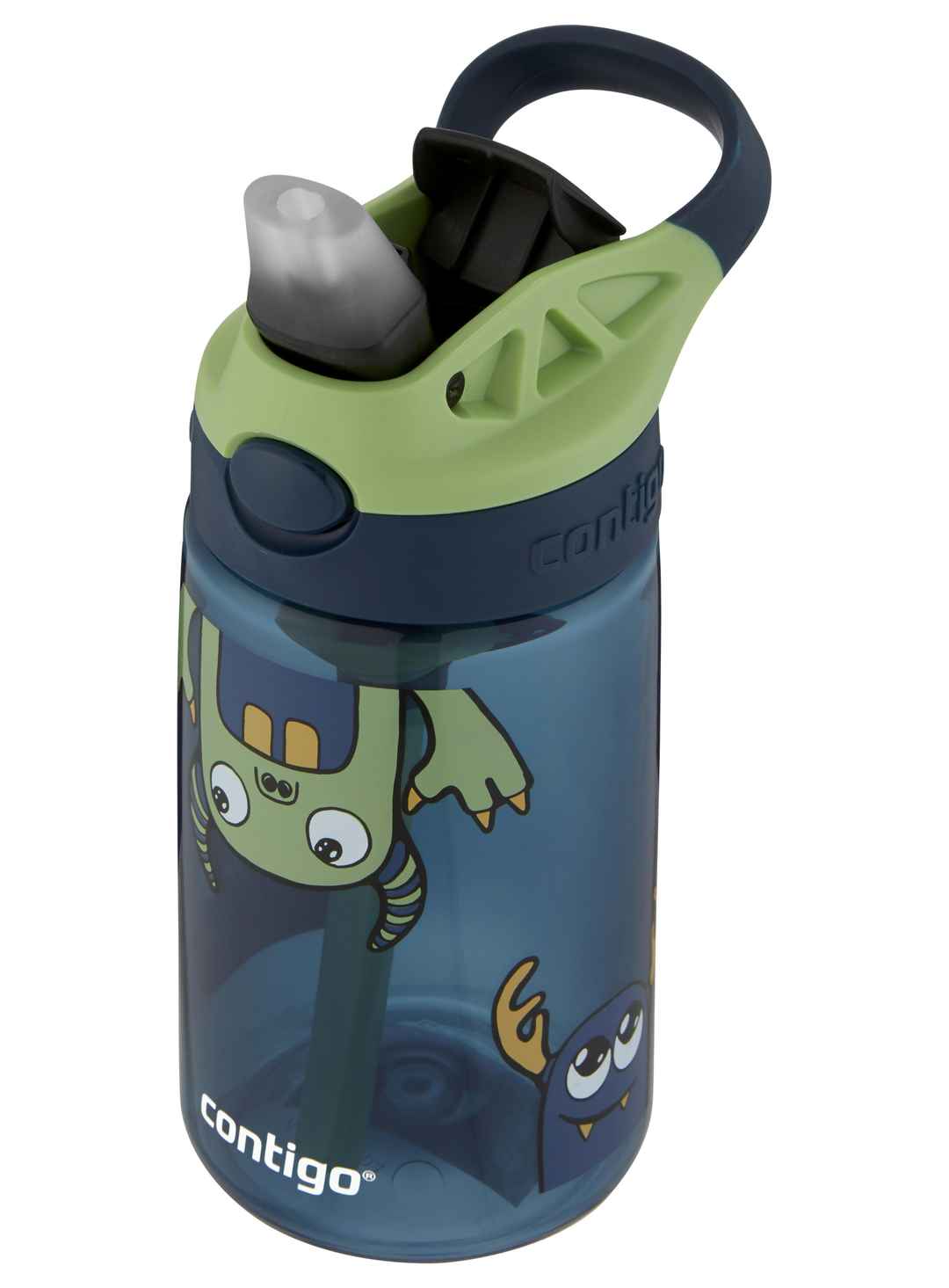 Graco Kids Straw Water Bottle With Autospout Lid, 14Oz, Monsters Blue