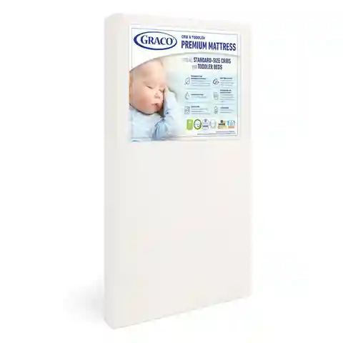 Every crib and toddler bed needs a mattress, and the Graco Crib and Toddler Mattress-in-a-Box is the perfect addition to complete your crib. Designed to fit any standard full-size crib or toddler bed, the Graco Crib and Toddler Mattress-in-a-Box is GREENGUARD Gold Certified, has a CertiPUR-US Certif...more