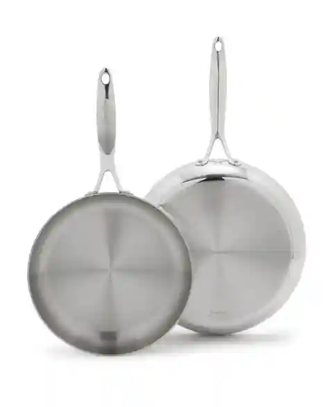 Engineered for exceptional results, this GreenPan frypan set utilizes tri-ply construction with an aluminum core for fast, even heating. Mirror-polished stainless-steel handles feature a comfortable V-shaped cutout for a secure and cooler grip. These versatile pans are oven and broiler safe, working...more