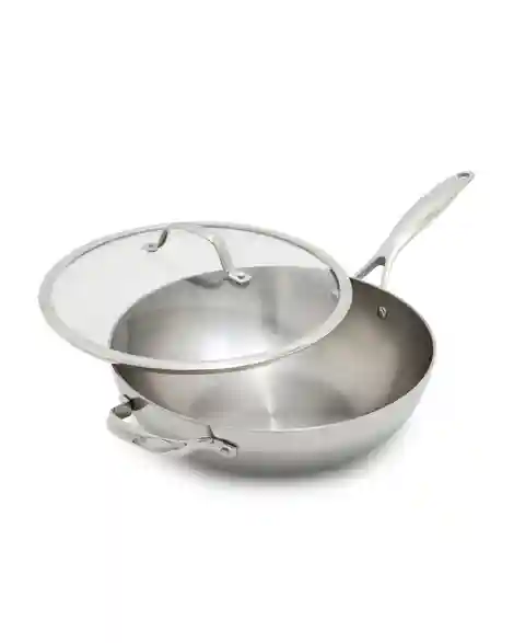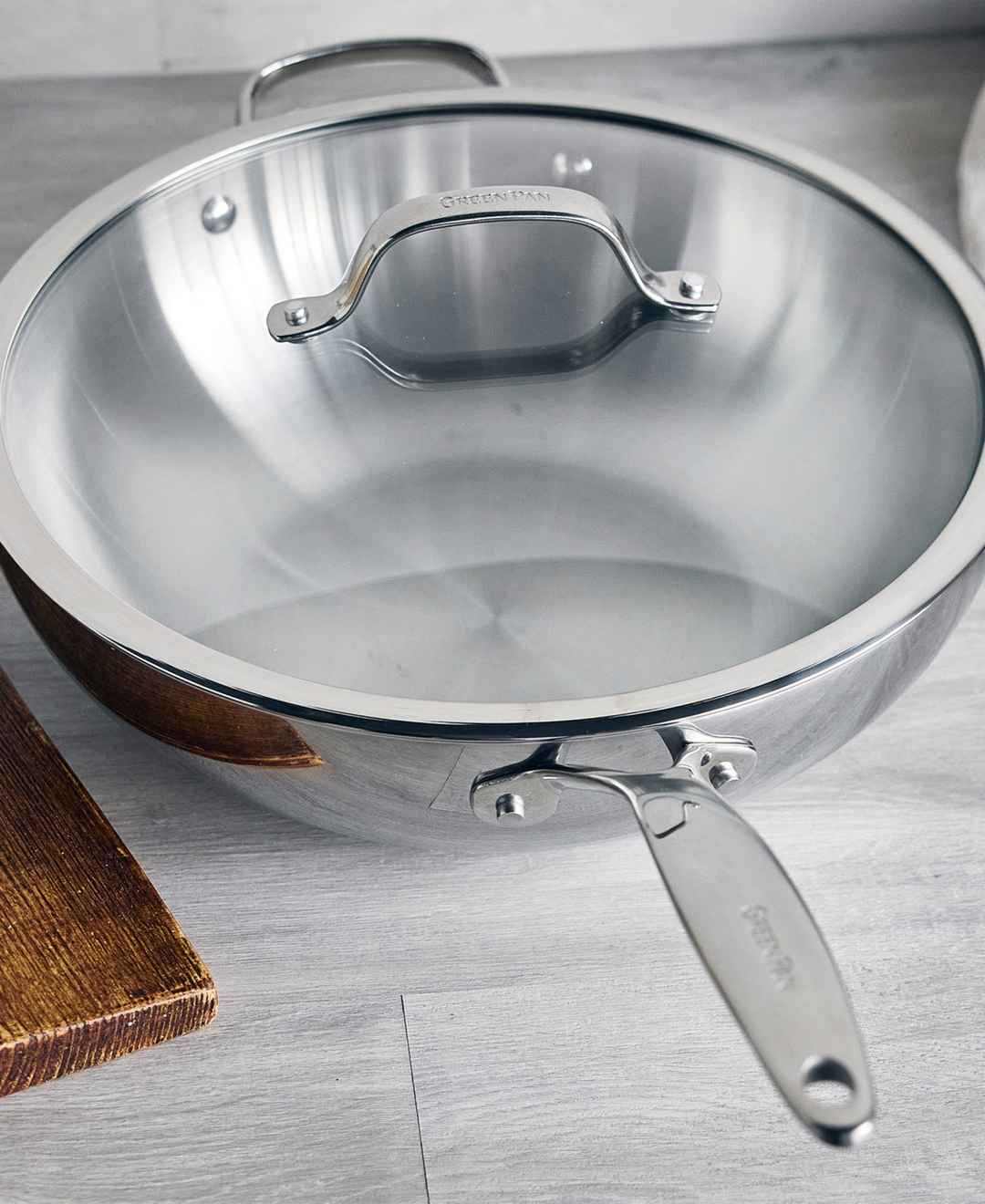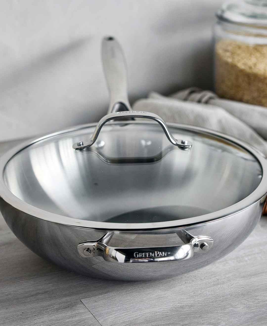 Experience professional-grade performance with this Valencia Pro wok from GreenPan, featuring tri-ply construction for fast, even heating. Its versatile design works on all stovetops and offers a secure handle for comfortable control.