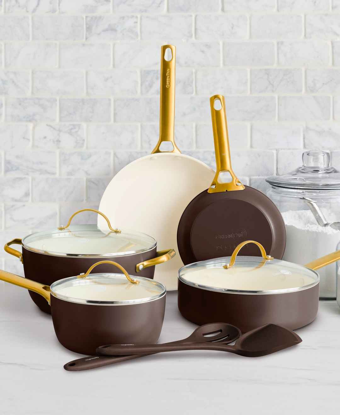 GreenPan Reserve Healthy Ceramic Nonstick Cookware Set, 10 Piece - Chocolate Brown