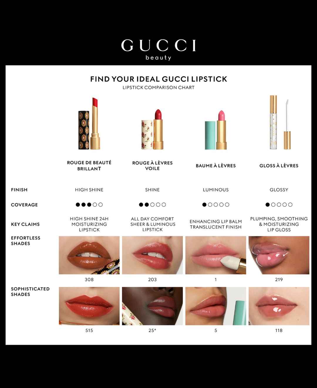 Kissing the lips with color like a memory, the Gucci Rouge a Levres Voile Lipstick's sheer formula gives lips a luminous finish in a range of vibrant shades that deliver moisture and comfort in a lightweight texture. Enriched with oils and waxes for a creamy and soft formula, this Gucci lipstick gli...more