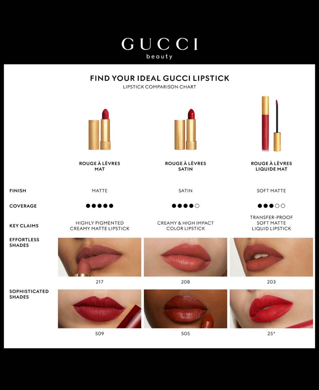 Rouge a Levres Satin is a creamy Gucci lipstick with rich color that leaves lips smooth and soft. Highly pigmented and lightweight for a comfortable feel. Enriched with oils, the formula of this Gucci lipstick leaves the lips smooth and soft. It delivers a perfect long-lasting satin finish that leav...more