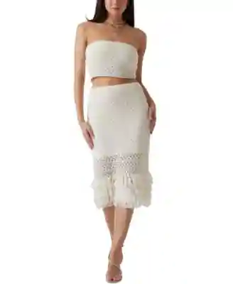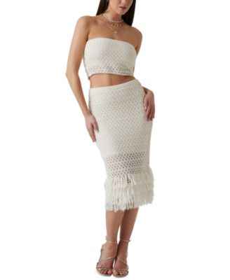 Guess Womens Luca Pointelle Strapless Tube Top Pointelle Fringed Hem Midi Skirt