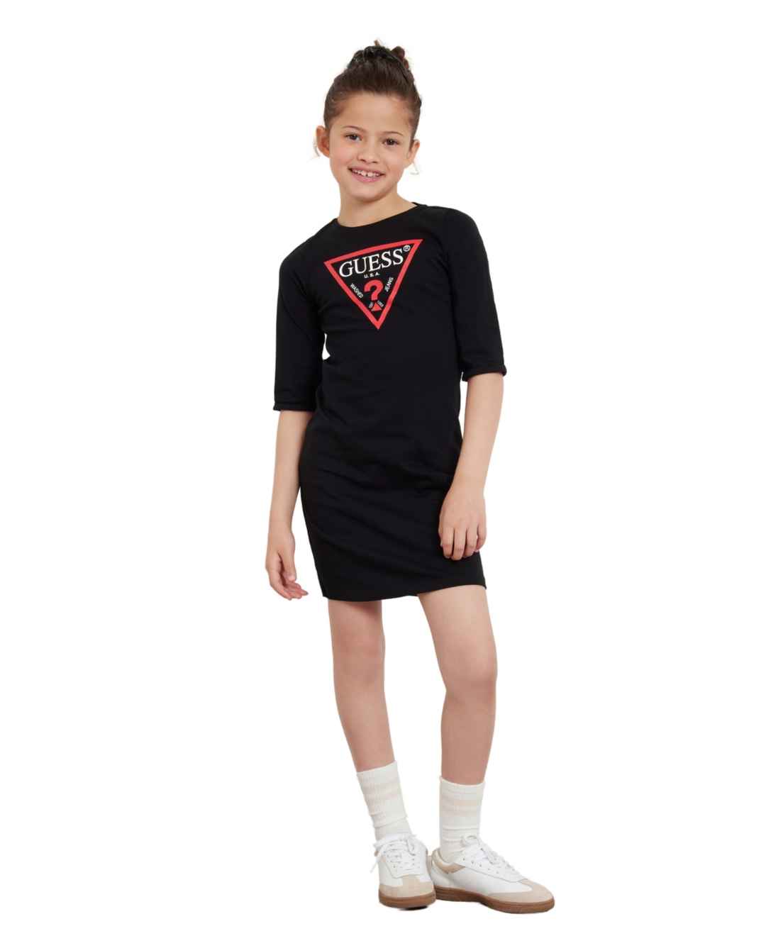 Guess Big Girls Triangle Long Sleeve T-shirt Dress - Black