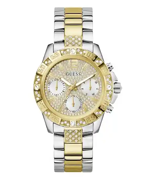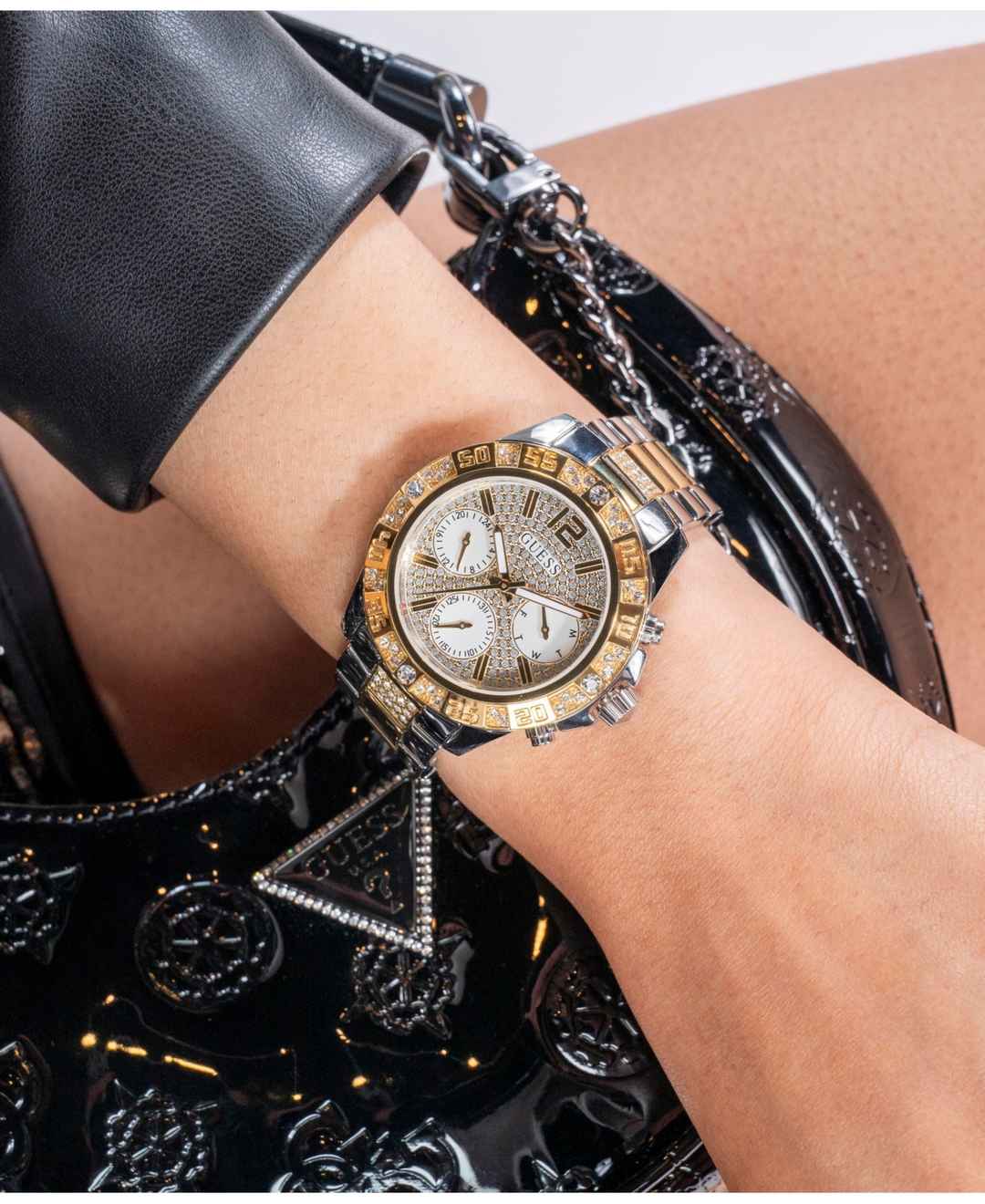 A truly majestic timepiece this style boasts a glitzed out multi-function chrono-look dial and a crystal bezel with a crystal bracelet link.