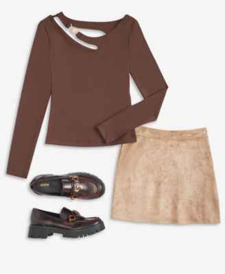 Guess Womens Eleanor Buckle Strap Top Camryn Faux Suede Mini Skirt